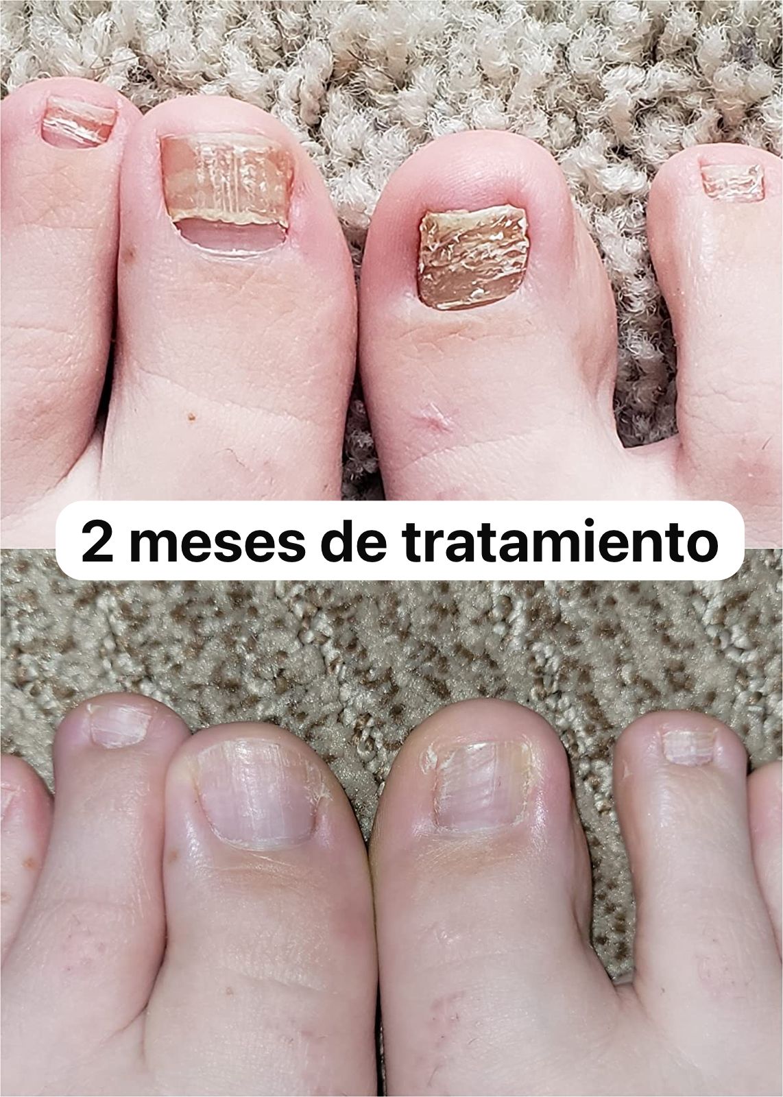 El proceso de renovación total depende del grado de infección y del crecimiento natural de la uña, pero en 3 a 6 semanas de uso constante los cambios son notorios: uñas más claras, firmes y sin zonas oscuras o amarillentas.